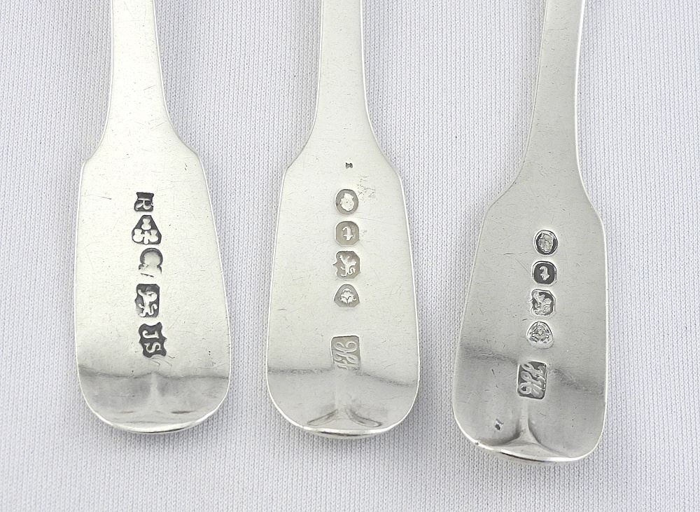 Harlequin Set of Seven Georgian Hallmarked Silver Tea Spoons, 5 3/8" L, 160g.