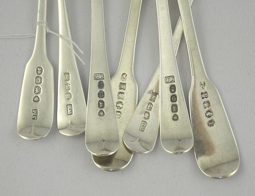 Collection of Thirteen Various Georgian Hallmarked Silver Tea Spoons, 5 1/4"L, 200g.