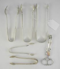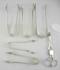 Collection of Hallmarked Silver Georgian to 20th C. Nips & Tongs, 4-5 3/4"L, 250g.