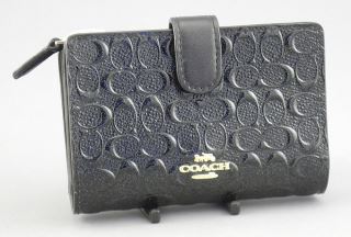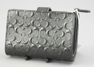 Black Coach Embossed Leather Wallet, F25937 Corner Zip.