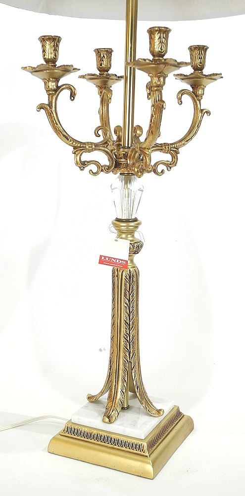 LOT 242 Brass Crystal & Marble Table Lamp, 36 1/4"h. Estimate: $60 - $80 Auction Date: Tuesday, April 14 2026 at 4:00 PM