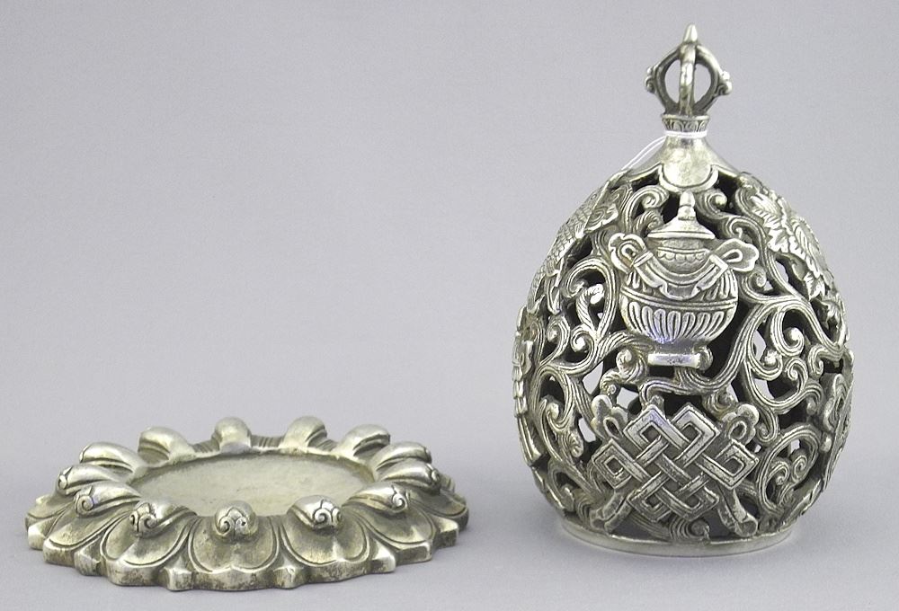 LOT 136 Sino Tibetan White Metal "Lotus" Lantern, 6"h. Estimate: $100 - $200 Auction Date: Tuesday, April 14 2026 at 4:00 PM