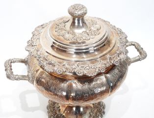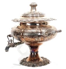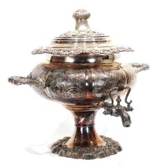 LOT 28 Old Sheffield Plate Hot Water Urn, 15 x 15 x 13 1/2" with Provenance. Estimate: $150 - $300 Sold For: $70 Auction Date: Tuesday, April 14 2026 at 4:00 PM