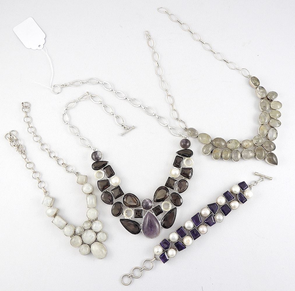LOT 262 Sterling Silver (925) Rutilated Quartz/Amethyst/Semi-Precious Necklace & Bracelets, 330g Estimate: $150 - $200 Sold For: $95 Auction Date: Tuesday, April 14 2026 at 4:00 PM