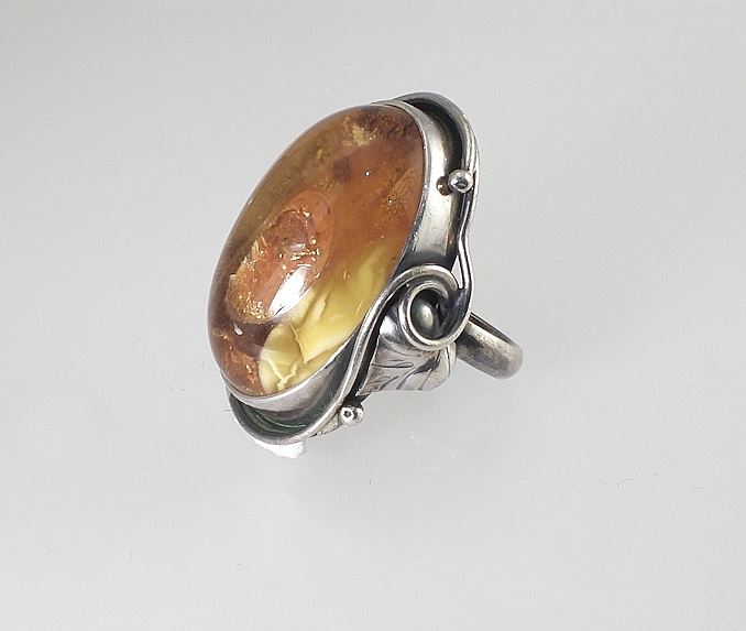 LOT 144 Sterling Silver (925) & Amber Ring, Size 7, 15.1g. Estimate: $60 - $100 Auction Date: Tuesday, April 14 2026 at 4:00 PM