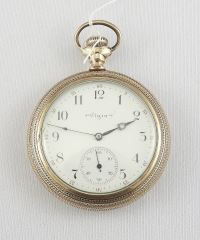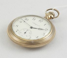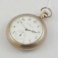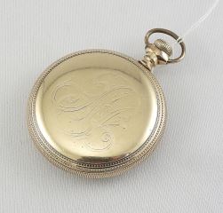 Elgin Gold Plated Pocket Watch, Monogrammed, 2 1/8" Diameter.