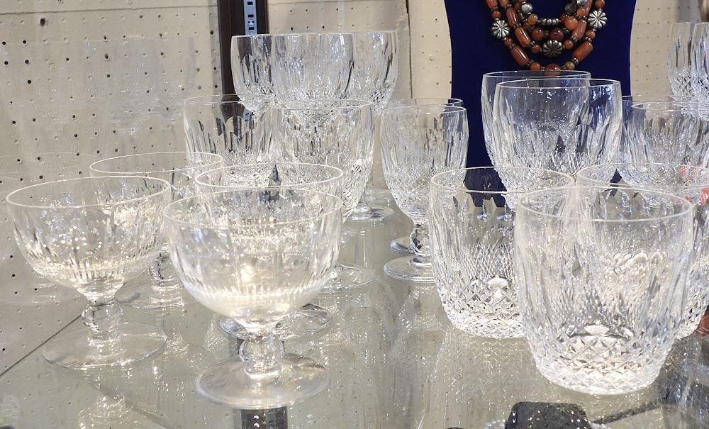 LOT 106 23 Pieces of Waterford Colleen Crystal Stemware in 5 Sizes & 8 Unmatched Saucers (1 chipp Estimate: $200 - $400 Sold For: $200 Auction Date: Tuesday, April 14 2026 at 4:00 PM