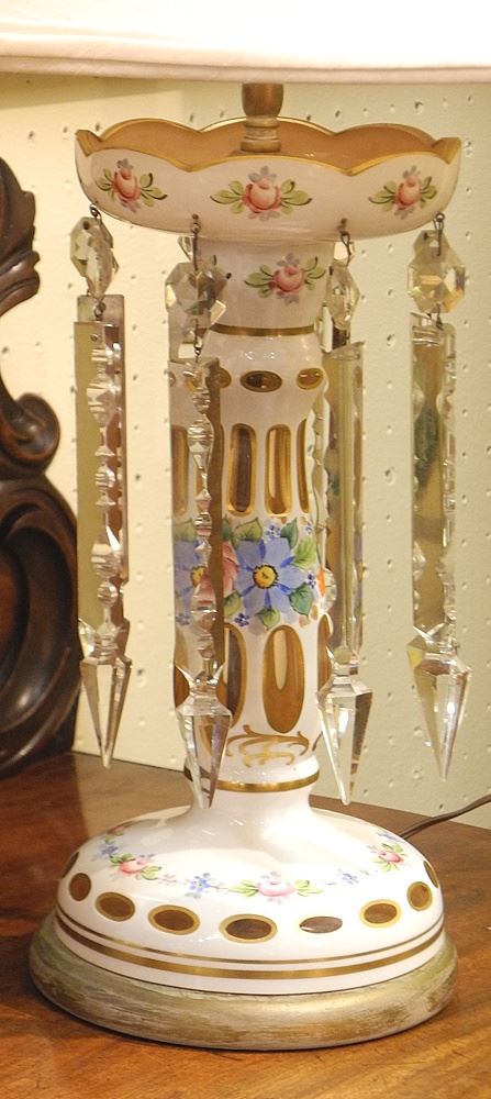 Pair of Bohemian Overlay Crystal Lustre Table Lamps, 27 1/2"h.
