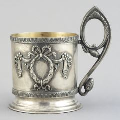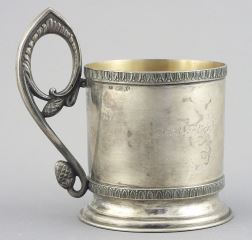 Russian 875 Silver Tea Glass Holder, Inscribed, 3 1/2"h, 137g.