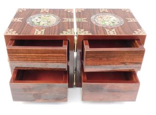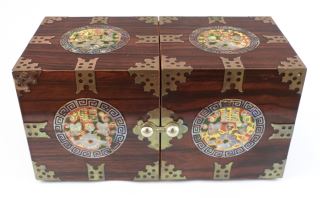 LOT 295 Chinese MOP Inlaid Jewelry Box, 4 1/8 x 8 1/8 x 4 1/8". Estimate: $50 - $60 Sold For: $60 Auction Date: Tuesday, April 14 2026 at 4:00 PM