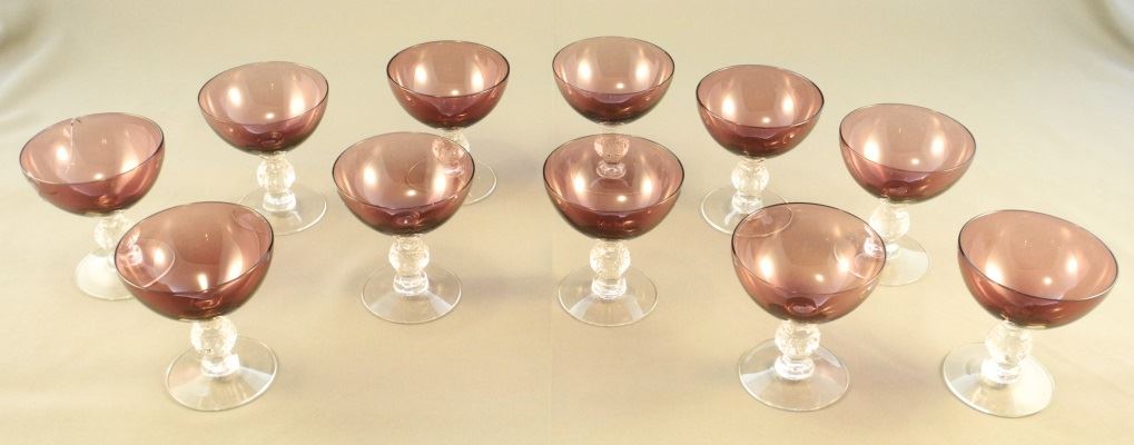 LOT 155 12 Amethyst Glass Finger Bowls / 10 Stemmed Champagnes / 12 Wine Glasses Estimate: $200 - $400 Sold For: $375 Auction Date: Tuesday, October 08 2024 at 4:00 PM
