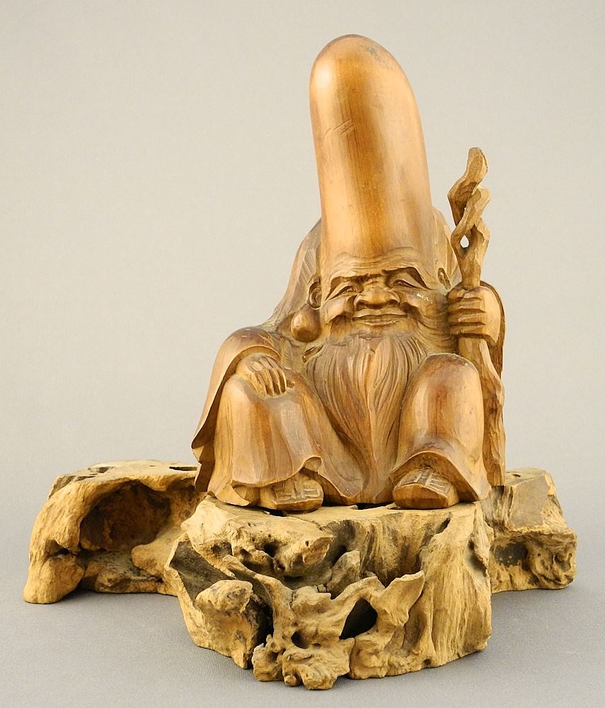 Japanese Carved Hardwood Figure of Fukujoruko (7"h) on Naturalistic Base, 9 1/8"w.