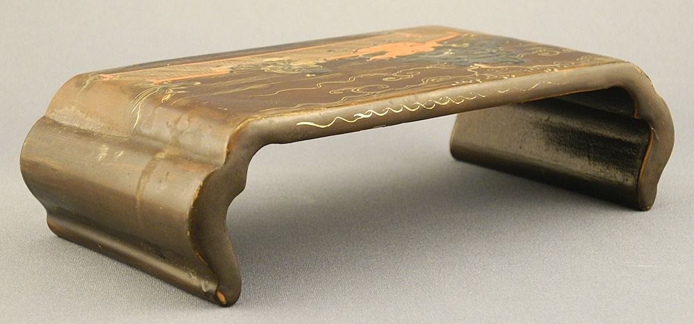 Chinese Gilt & Scarlet Lacquer Wrist Rest, 1 7/8" x 7 1/8" x 3 3/4" (as found).