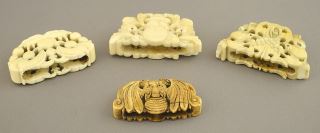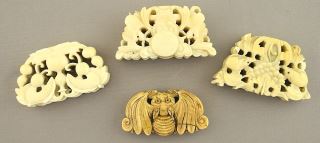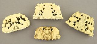 LOT 66 4 Chinese Fan Handle Fittings, 1 7/8 x 2 1/8"w, 74g, NO EXPORT. Estimate: $300 - $500 Sold For: $350 Auction Date: Tuesday, October 08 2024 at 4:00 PM