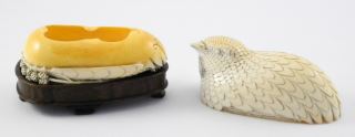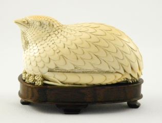 LOT 64 Carved Ivory Figure of a Nesting Partridge, 3 1/2"h. NO EXPORT. Estimate: $400 - $500 Sold For: $600 Auction Date: Tuesday, October 08 2024 at 4:00 PM