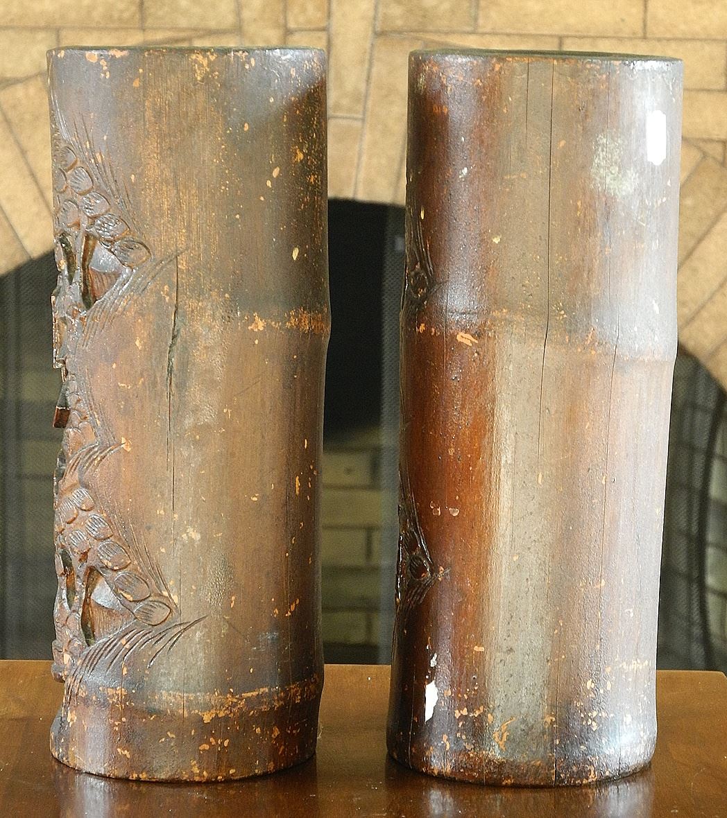LOT 193 Pair of Chinese Carved Bamboo Vases, 11 7/8". Estimate: $60 - $90 Auction Date: Tuesday, October 08 2024 at 4:00 PM