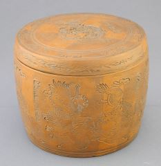 LOT 115 Chinese Yixing Ware Cricket Fighting Arena, 3 7/8" x 4 7/8" Diameter. Estimate: $200 - $400 Sold For: $100 Auction Date: Tuesday, October 08 2024 at 4:00 PM