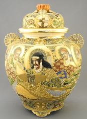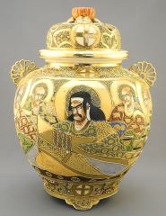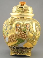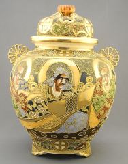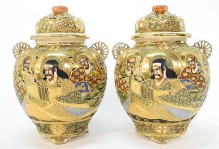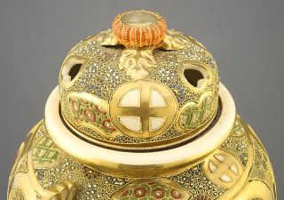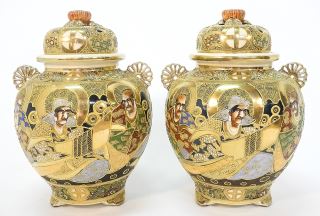 Pair of Satsuma Covered Censers, 13 1/8".