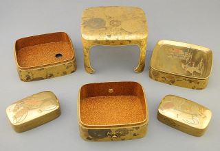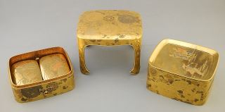 Japanese Lacquered Jubako with Internal Boxes, 3 1/2" x 4 1/4" x 3 5/8".