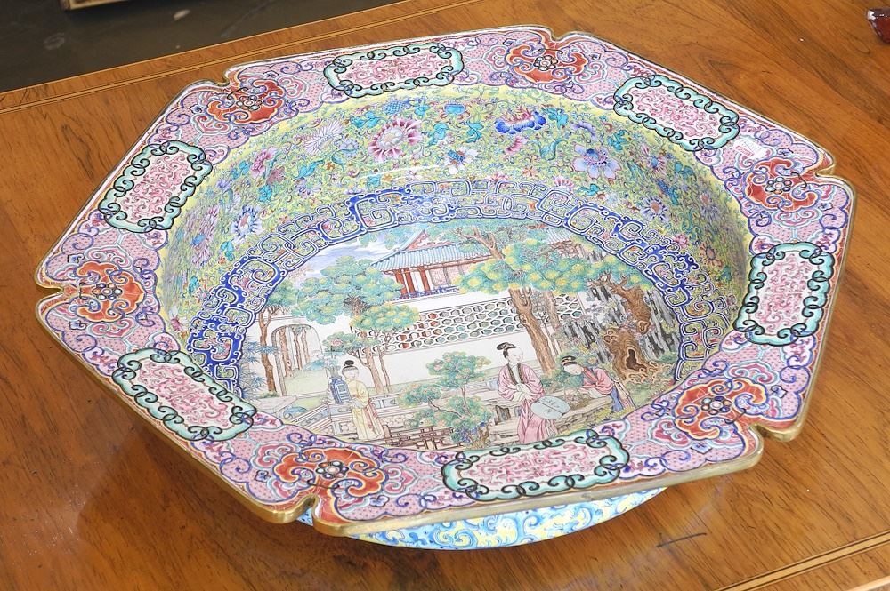 LOT 101 Hexagonal 19th C. Canton Enamel Bowl, 3 1/2" x 16 1/8" Diameter. Estimate: $4,000 - $6,000 Sold For: $50,000 Auction Date: Tuesday, October 08 2024 at 4:00 PM