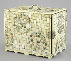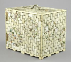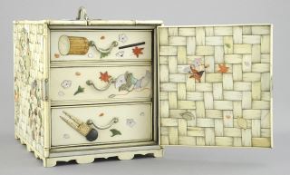 Japanese Meiji Shibayama Box (Kodansu) Shibata Zeshin Mark, 4 3/4 " x 5 5/8" x 4 1/8", NO EX