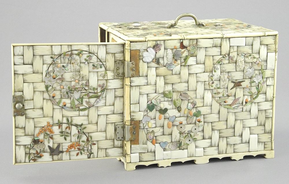 Japanese Meiji Shibayama Box (Kodansu) Shibata Zeshin Mark, 4 3/4 " x 5 5/8" x 4 1/8", NO EX