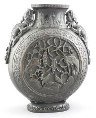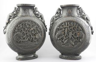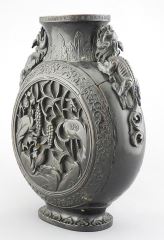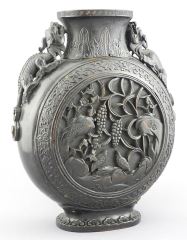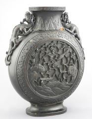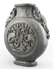 LOT 235 Pair of Chinese Hardwood Flask Vases Inset with Bronze Bases, Qianlong Mark, 10 7/8"h. Estimate: $400 - $600 Sold For: $1,600 Auction Date: Tuesday, October 08 2024 at 4:00 PM