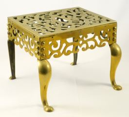 LOT 160 Georgian Cast Open Work Brass Fireplace Trivet, 15 1/4"w. Estimate: $150 - $200 Sold For: $200 Auction Date: Tuesday, October 08 2024 at 4:00 PM