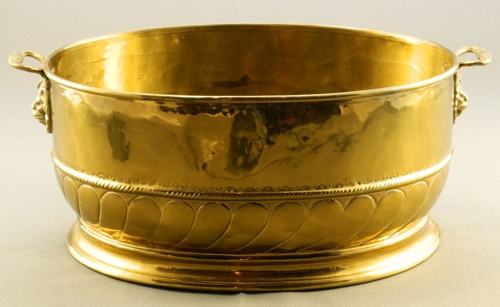 Brass 2 Handled Oval Jardiniere, 16 3/4" Diameter.
