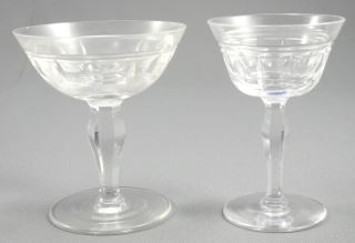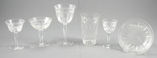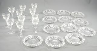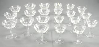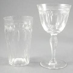 Set of Cut Crystal Glassware with Faceted Stems and Deep Fluted Bowls (1 chipped, 1