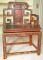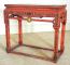 Chinese Red Lacquered Stretcher Table With Landscape Top