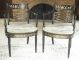 Pair of Regency Black and Gold Ebonized Cane Seated Armchairs