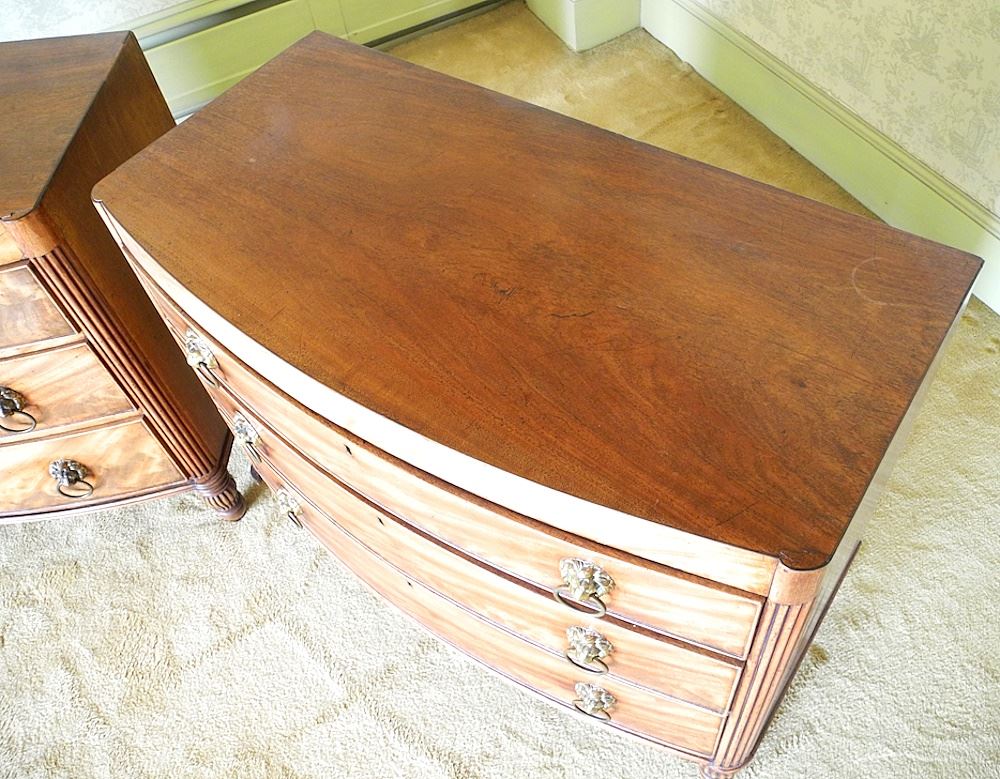 LOT 2 Pair of Regency Mahogany Bow Front Chest of Drawers with Lion Ring Handles, 40" x 20" x 34"h. Estimate: $1,000 - $1,500 Sold For: $6,500 Auction Date: Tuesday, October 08 2024 at 4:00 PM