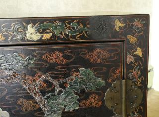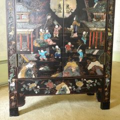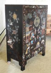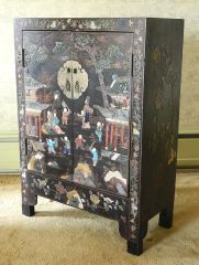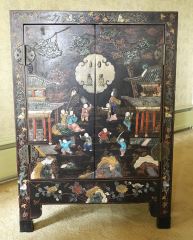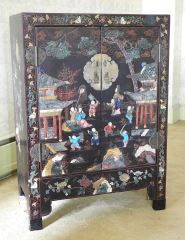 Chinese Hardstone Decorated 2 Door Cabinet, 31 1/2" x 15 1/2" x 44 1/2" h.
