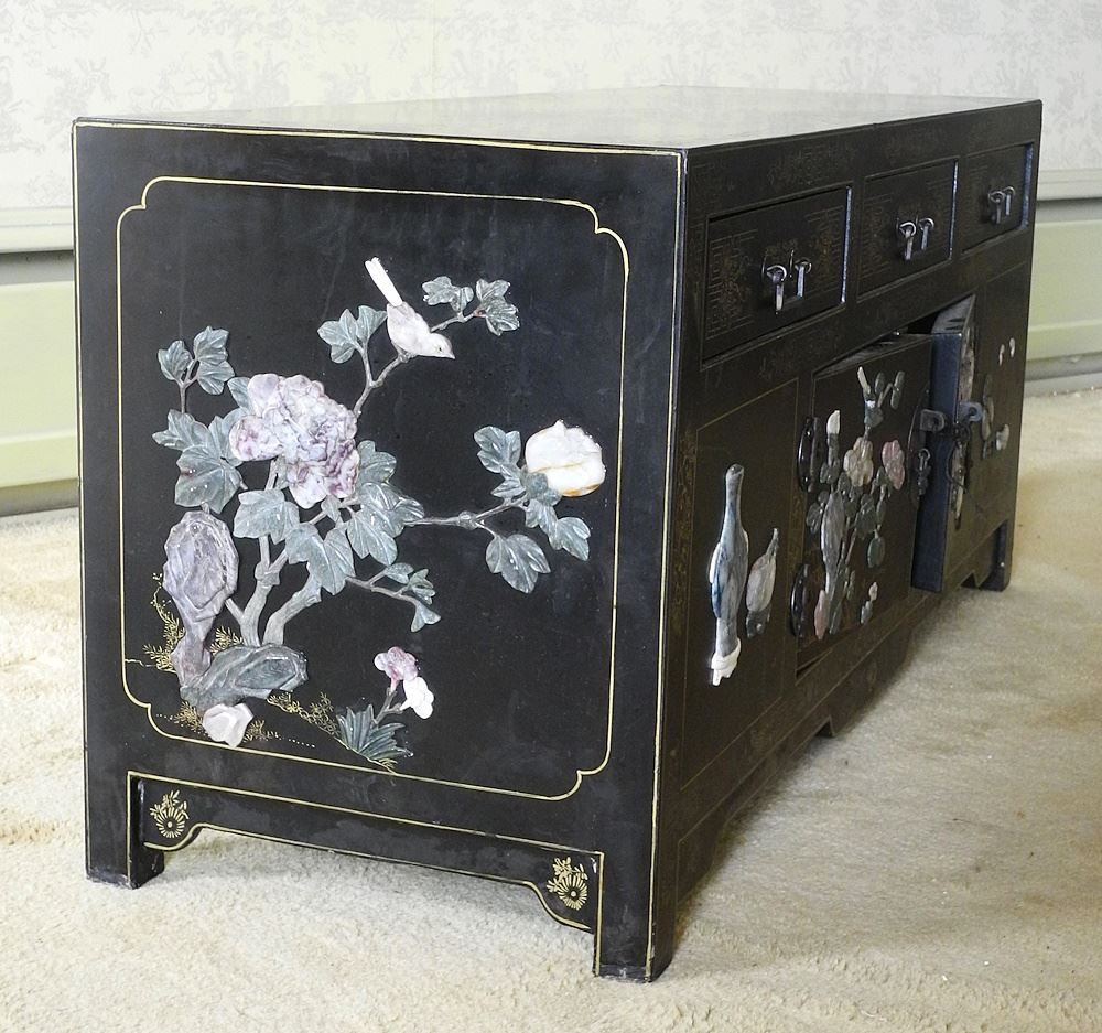LOT 23 Chinese Lacquered Low Cabinet, 43 1/4" x 15" x 19"h. Estimate: $250 - $500 Auction Date: Tuesday, October 08 2024 at 4:00 PM
