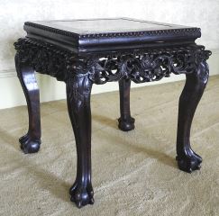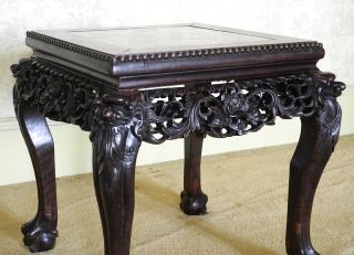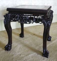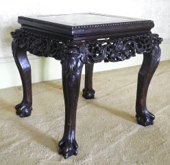 LOT 79 Chinese Carved and Pierced Rosewood Marble Inset Jardiniere Stand, 20" x 20" x 20 1/2"h. Estimate: $200 - $300 Sold For: $325 Auction Date: Tuesday, October 08 2024 at 4:00 PM