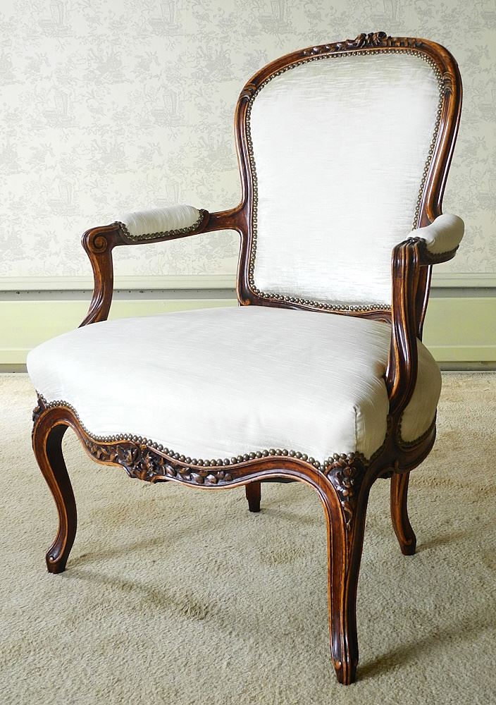 LOT 77 Louis XV Carved Mahogany Open Armchair, 38 1/2" x 28" x 28"d. Estimate: $200 - $400 Sold For: $300 Auction Date: Tuesday, October 08 2024 at 4:00 PM