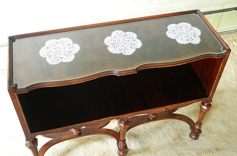 Mahogany Open Bookcase with Fitted Glass Top, 39" x 29 1/2" x 13 1/2"d.