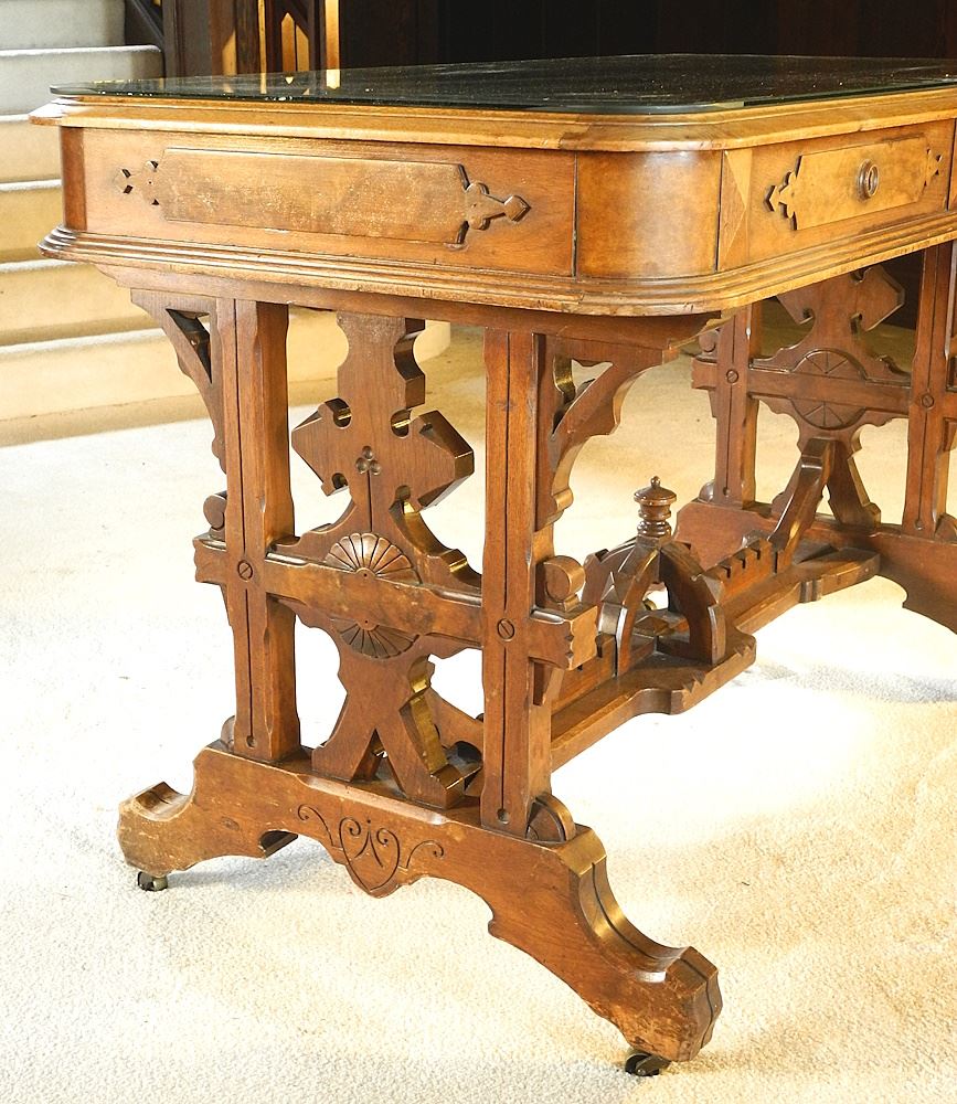 LOT 27 Renaissance Revival Victorian Walnut Library Table, 48" x 25" x 30 1/2"h. Estimate: $250 - $500 Sold For: $300 Auction Date: Tuesday, October 08 2024 at 4:00 PM