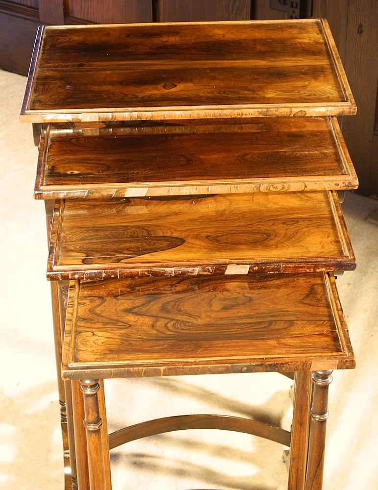 LOT 234 Set of Four Georgian Rosewood Nesting Tables, 18" x 12 1/2" x 30 1/4" h. Estimate: $250 - $500 Sold For: $275 Auction Date: Tuesday, October 08 2024 at 4:00 PM