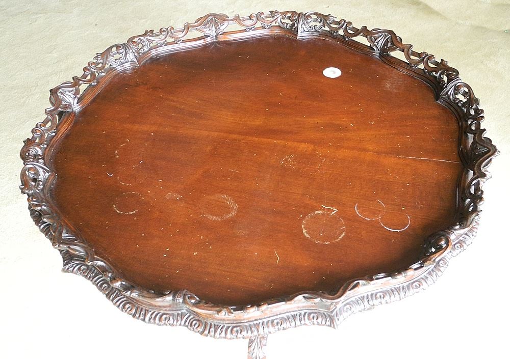Georgian Carved and Pierced Tripod Table with Pie Crust Top, 33 1/2"D x 33 3/4" h.
