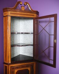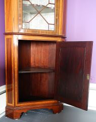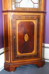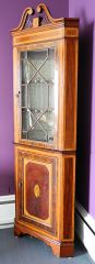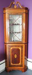 Early Victorian Inlaid Mahogany Corner Cabinet, 20" x 20" x 82"h.