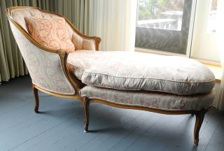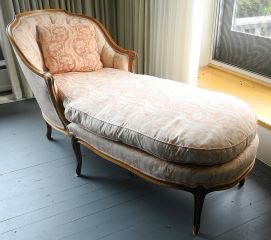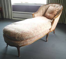 LOT 85 Carved Walnut Chaise Longue with Down Upholstered Cushion, approx. 64 " x 29". Estimate: $150 - $250 Sold For: $475 Auction Date: Tuesday, October 08 2024 at 4:00 PM