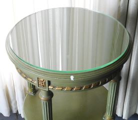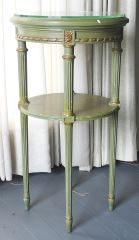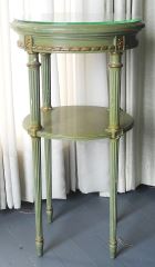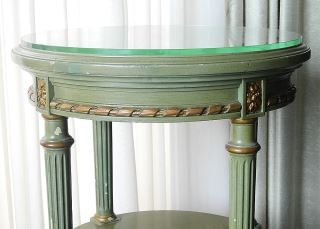 Green and Gold Painted Glass Top Circular Occasional table, 16" d x 29 1/2" h.