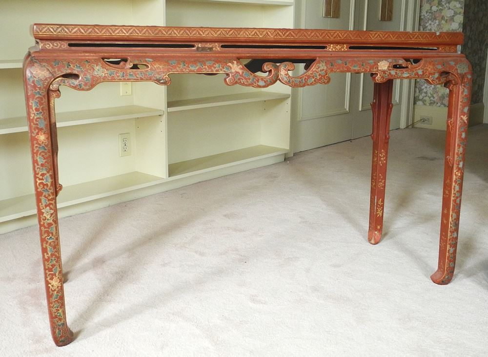 Chinese Red Lacquered Gold Painted Altar Table, 51" x 19" x 33 1/2"h.