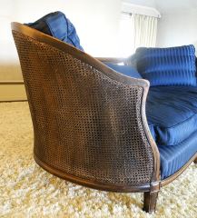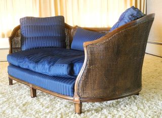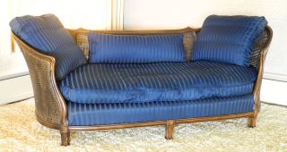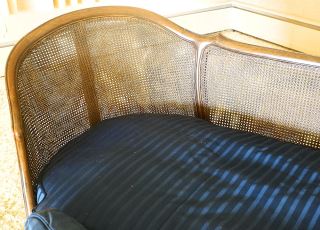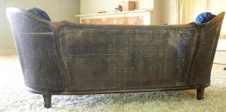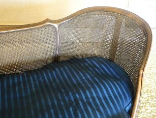 LOT 83 Cane Back Curved Mahogany Upholstered Settee, Estimate: $100 - $300 Sold For: $100 Auction Date: Tuesday, October 08 2024 at 4:00 PM