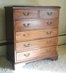 LOT 84 Georgian Style Mahogany Six Drawer Chest, 30" x 18" x 35 1/4"h. Estimate: $150 - $250 Sold For: $180 Auction Date: Tuesday, October 08 2024 at 4:00 PM