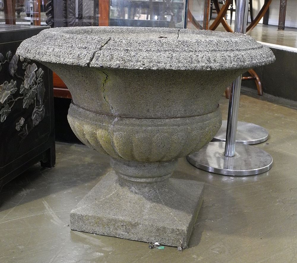 LOT 200A Pair of Concrete Exterior Garden Urns, Approx. 25" Diameter (as found). Estimate: $150 - $300 Auction Date: Tuesday, October 08 2024 at 4:00 PM