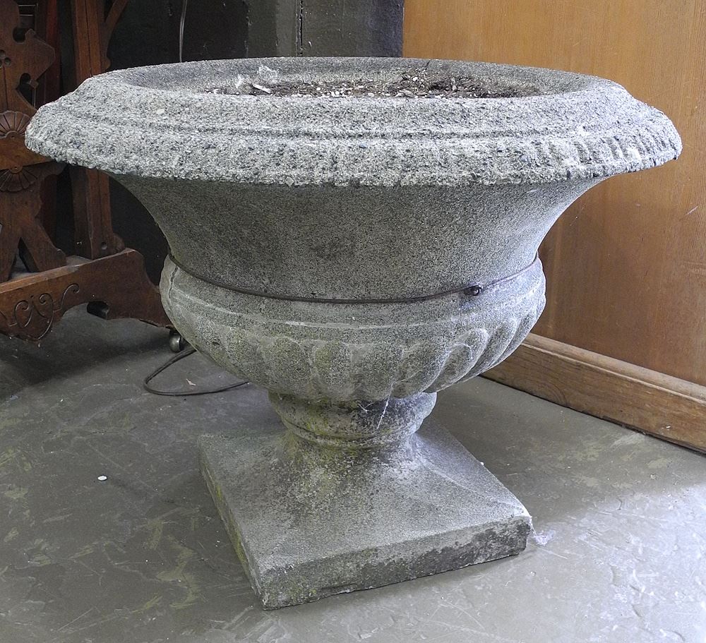 Pair of Concrete Exterior Garden Urns, Approx. 25" Diameter (as found).
