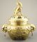 Heavy Cast Brass Chinese Incense Burner Surmounted by a Kylin